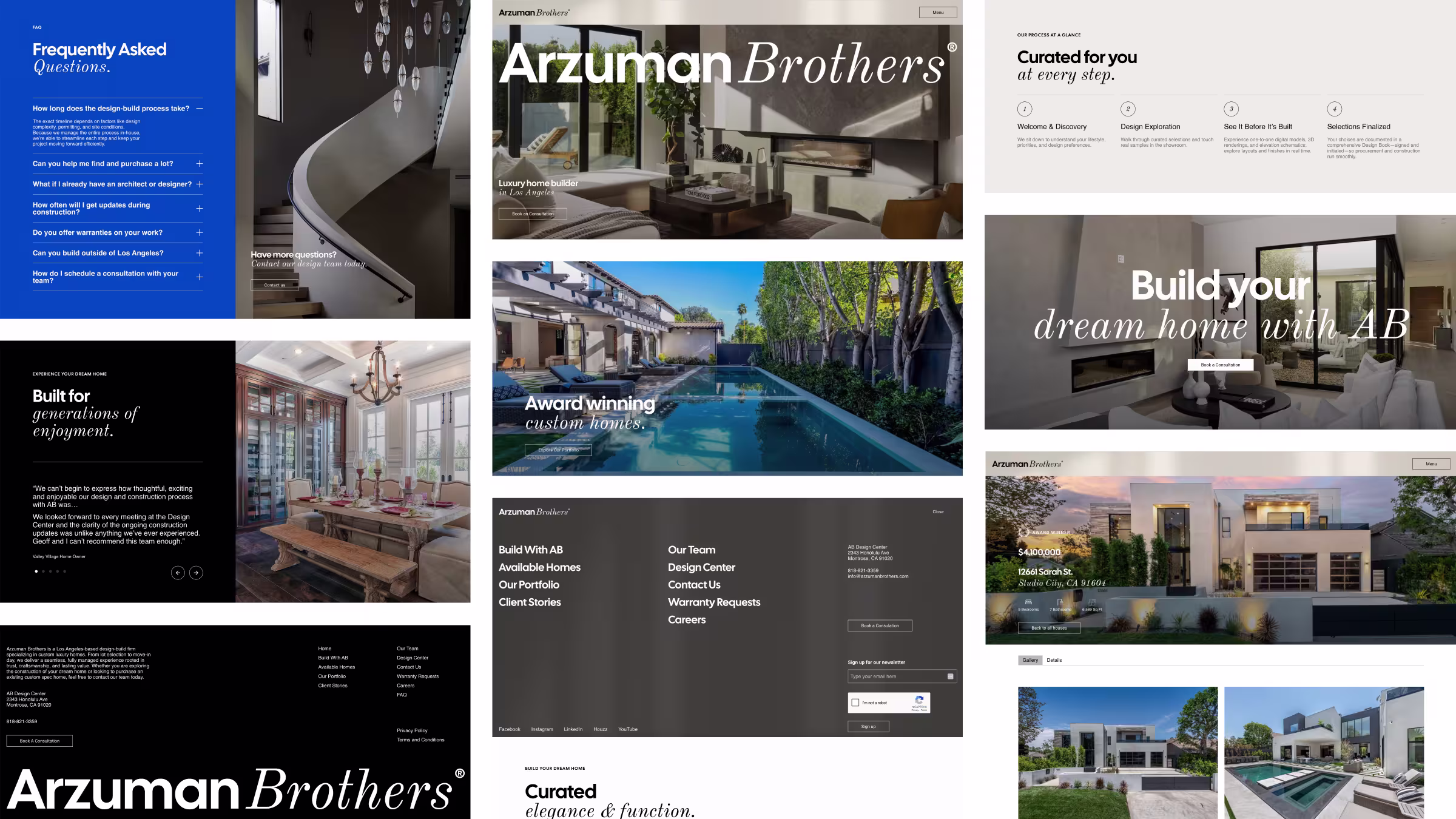 Arzuman Brothers’ original digital presence and marketing materials did not reflect the premium nature of their services: a full end-to-end design-build journey that offers clarity, craftsmanship, and a highly personalized experience for luxury homeowners. Their industry focus spans custom architectural design, construction excellence, smart home integrations, and a seamless client process from lot selection through move-in.